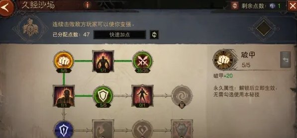 这套加点下来破甲护甲都是760,伤害6800、生命55000,控制强度280、控制抗性360,把硕果累累的生命值全部加满还有3000血量,也就是在1215级可以点满。再去点久经沙场的生命值,那里有40个点数,前置6个,一共46级可以点出,需要到1261级。这样就把全部的生命值拉满了,可以达到55000+11000=66000血量。