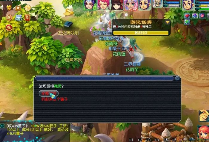 由于残页不可交易、给予,所以通常情况,建议由一个人拾取五片“残页”后再去交任务比较方便。如果分开拾取的话,需要一页页上交给“生死簿残册”才行。完成任务后,可以获得10点五行之力。