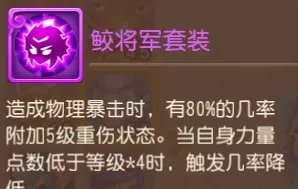 套装效果:造成暴击时,有概率造成5级重伤。5级重伤降低50%治疗效果、且每回合持续损失等级*5气血,相当于持续3回合的高固伤。降低受治疗效果,也相当于