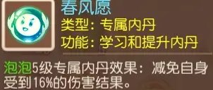 专属内丹,春风愿减免自身受到的物法伤害16%,相当于玩家同时携带百折和独当(4.3件)两套器灵