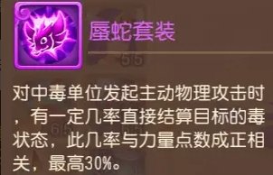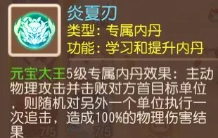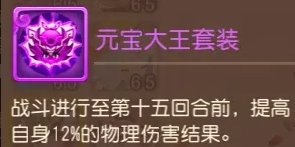 再看元宝大王的套装,条件下伤害结果加成;专属内丹也是额外的伤害目标