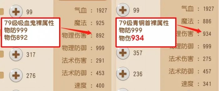 而且我对比过吸血鬼和青铜首同样以普通宝宝天生最高资质和成长的情况下,相同的物理防御,青铜首的物理伤害要高于吸血鬼