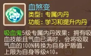 气血满时,会将吸取气血的100%转换为护盾,上限等级*10