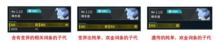③遗传后仅有纯金词条(冰帝/传说)的子代。