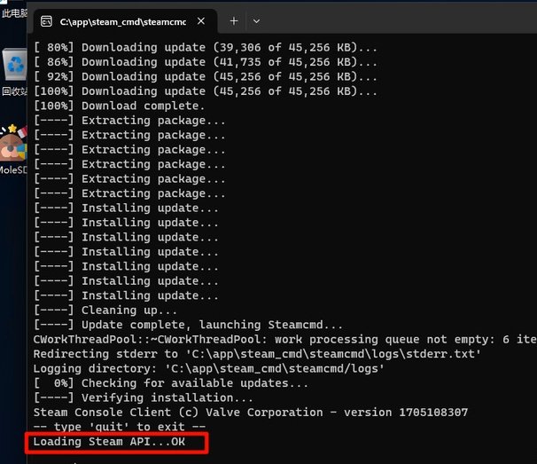 出现Loading Steam API...OK,表示下载更新完成,请不要关闭窗口后续会用