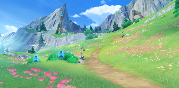 1.使用风元素,激活这里的风车机关。