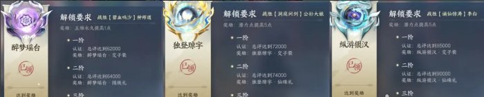 分别完成三个成名赏认证:醉梦瑶台/独登琼宇/纵游银汉即可获得。