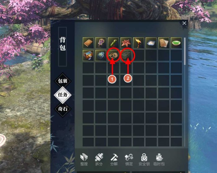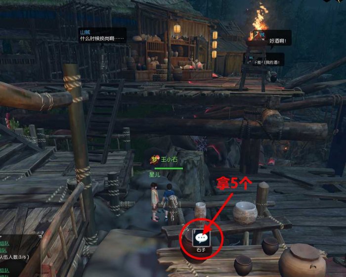 3、进入逃离盗贼阶段。出门在袋子上面有石头,需要拿5个。