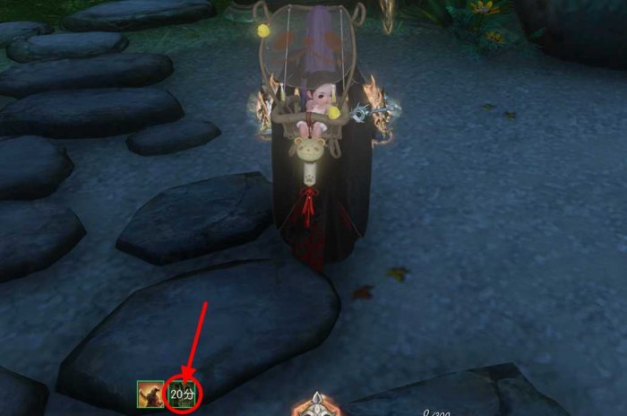 ④带娃闯江湖一定要最后做,点击【带娃闯江湖】会将宝宝挂在身后,20分钟倒计时结束后,才算完成。每天上线可以先完成其他简单日常,最后点击带娃闯江湖去做日常之类的玩法。