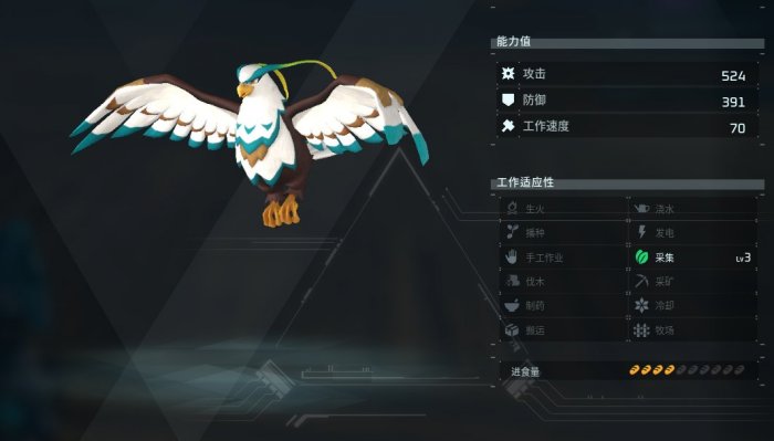 看着很捞的飞行帕鲁,然而天勤鸟的伙伴技能能让玩家拥有该作最快的滑翔伞速度(满级1700),要知道大部分帕鲁的坐骑冲刺速度不过1500。