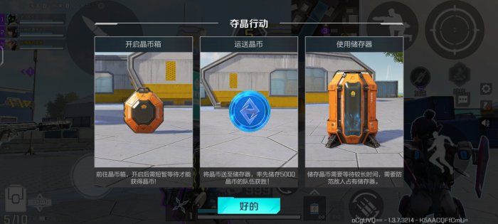 从刚开始玩家可以根据地图中的黄色指标去开启晶币箱,打开晶币箱有着1500晶币和一个四级甲,前期尽量的去抢晶币箱,不仅有大量的晶币也有着四级甲,拿到了四级甲也为自己的战斗力提升了不少,最后就是去对应的目的地使用储存晶币,储存晶币的过程中也是比较久的,我们要配合队友一起去击退敌人,遇到了其他队伍也在储存晶币,我们也可以去进行阻止,最终的胜利条件主要看哪一个队伍先获得到的5000晶币,胜利就属于哪个队伍的。