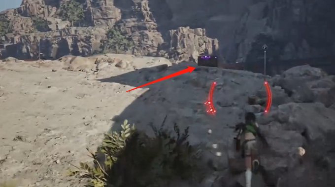 来到上图人物所在的位置,而后直行右拐,悬崖边有一个宝箱,里面就是破敌发生器。