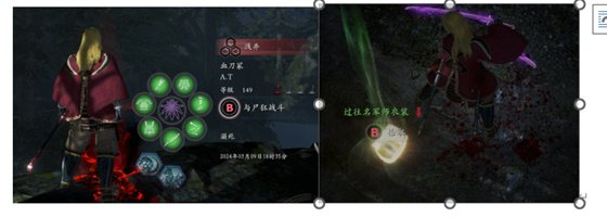 血刀冢:称为红坟,玩家死亡后形成,上有死亡原因,靠近后召唤为具有玩家装备的敌对npc,击败后可获得装备和酒盅。