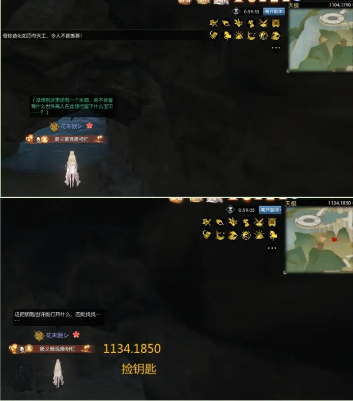 观海坪1083.1765到(1104.1790)进洞里,往水方向走,到1134.1850捡钥匙