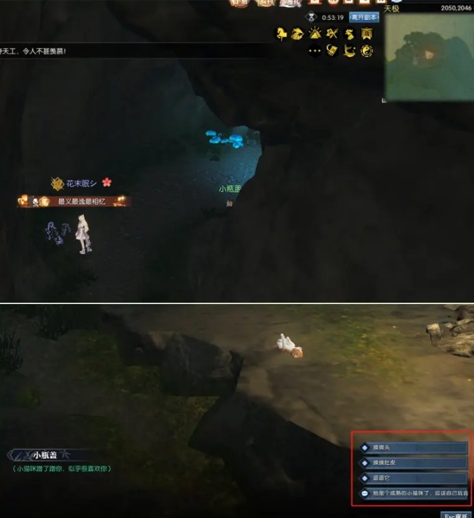 路上2050.2046捡个草,若小猫不走了可按F互动