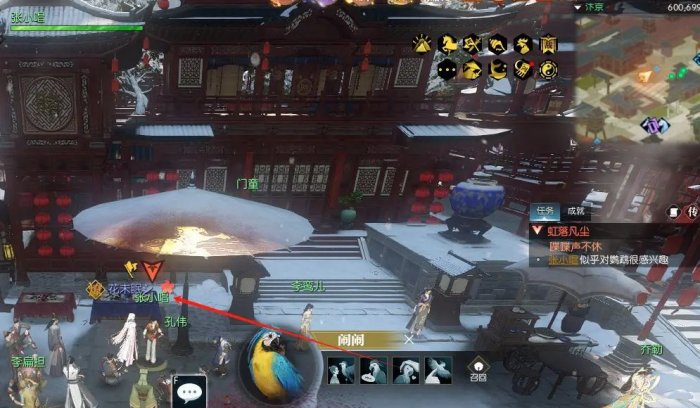 汴京600.699,召唤鹦鹉对张小唱互动