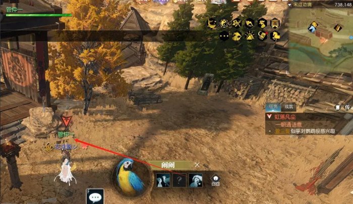 宋辽汴京738.148,召唤鹦鹉对管仲一互动