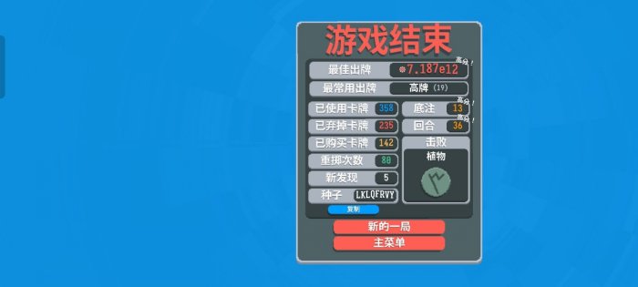 至此开局DNA先放最左边复制老K,然后彩色小丑放最左边提升倍率,多复制强化老K,尤其是能带烙印的能重复触发一次,最后老k的数量会非常多。可以买星球牌,塔罗牌,经济牌进一步提升,这取决你在什么回合刷出什么样的牌,值得注意的是如果刷到重置boss优惠券必拿,因为后面会有禁用人头牌。最后这个种子的上限还有待提升,如果能刷到更强力的牌以及优惠券会更强。