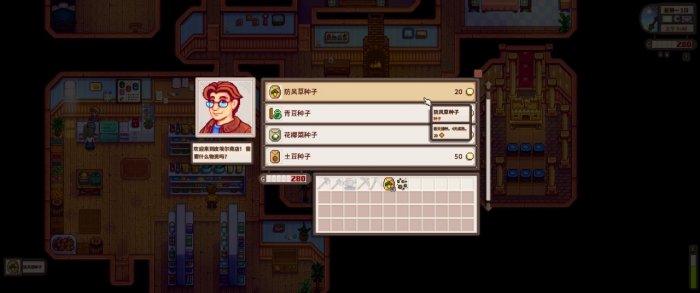 第三件事用初始的钱去皮埃尔商店买适量防风草种子(也可以买其他看喜好),然后清理农场开垦种下种子并浇水。