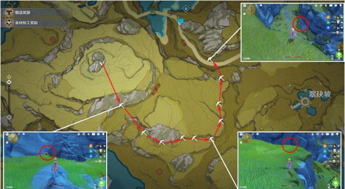 2.位于璃月,建议在队伍中加入七七/烟绯,天赋可以标记特产位置