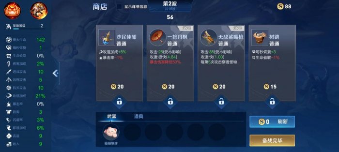 前期是发育阶段,追着怪打多刷点钱,中后期再以保命为主。前期拿道具也是多拿一些打怪升级加属性的这些,收益高。每回合买东西的阶段可以多刷新几次,刷到好的没钱也可以锁定等下一波买,前期刷新花钱很少,而且很多给力的道具都是白色的,所以前期的积累滚雪球阶段一定要搞好,后期就能嘎嘎乱杀。