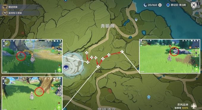 2.位于蒙德,建议在队伍中加入可莉,天赋可以标记特产位置