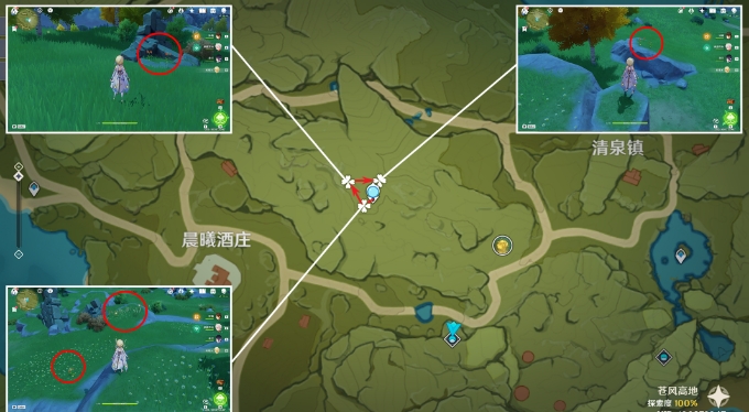 2.位于蒙德,建议在队伍中加入可莉,天赋可以标记特产位置