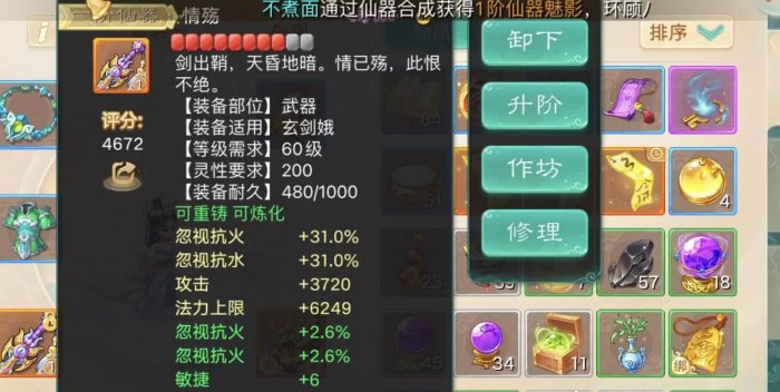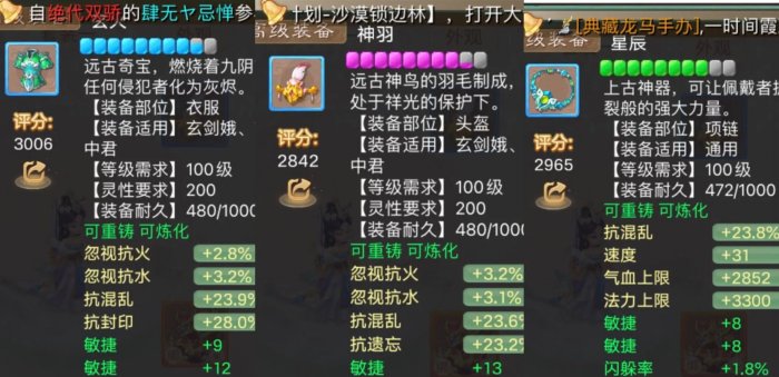 这是仙器的属性,如果武器是仙器,建议鞋子用金蟾的敏鞋,如果没有仙器的宝宝,建议武器用金蟾,基础属性和炼化属性都可以随便选。然后鞋子用高装,高装鞋子和金蟾敏鞋前期相差的并不多。