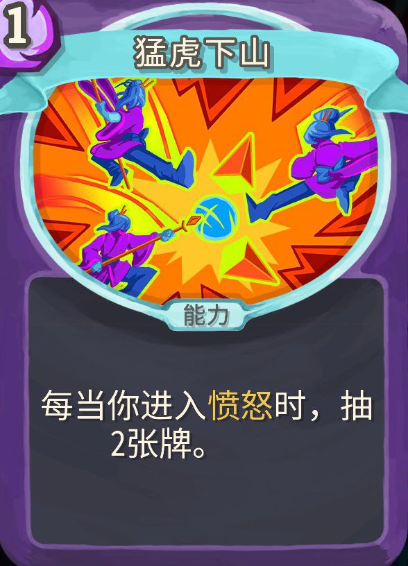猛虎下山:每当你进入愤怒时,抽两张牌。