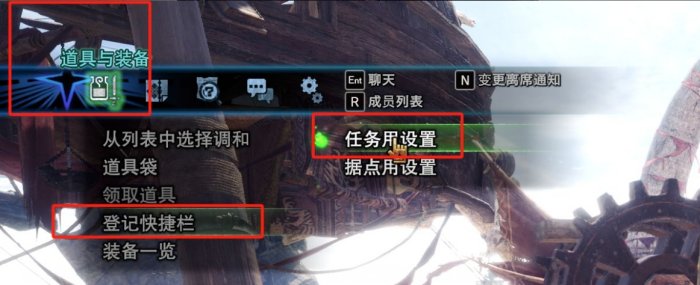 在任务中也可以快捷调和,需要设置登记快捷拦,并且狩猎过程中背包里有相应素材。如下图