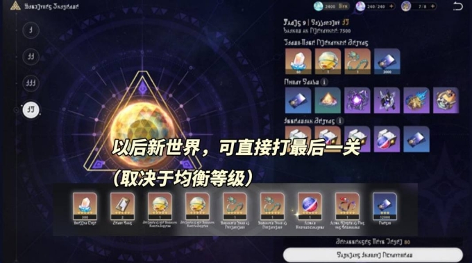 在模拟宇宙常规世界中,允许开拓者直接挑战当前均衡等级的最高难度关卡。例如即将开启的世界9,均衡6开拓者可以直接挑战最后一关,一次性解锁4个难度奖励。