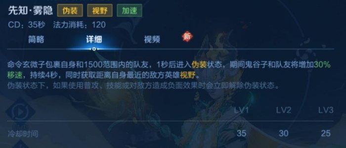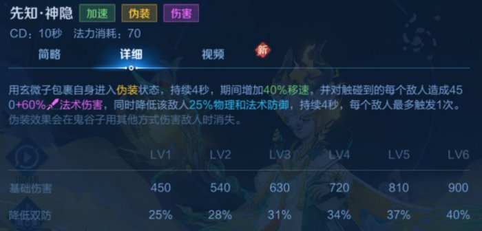 一技能有一行小字这里解释一下,伪装效果在鬼谷子用其他方式伤害敌人时消失,这个消失的只有伪装效果,减双抗的效果会一直在持续四秒。