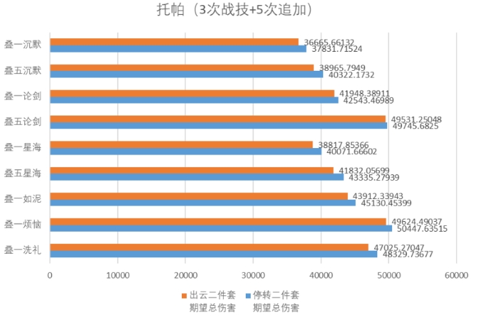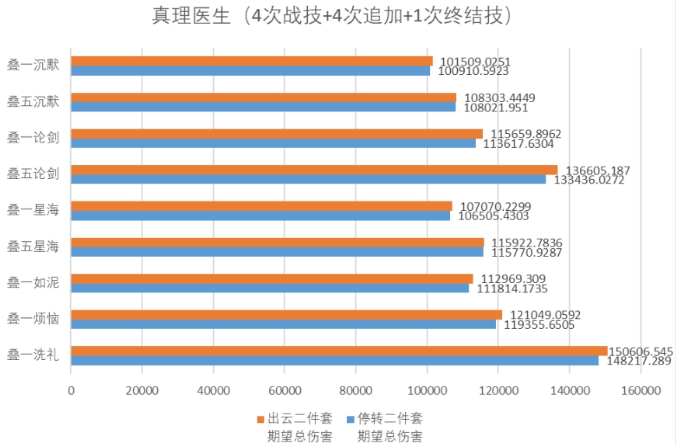 同理,在真理托帕追击队中,真理出云套与停转套伤害期望对比如下: