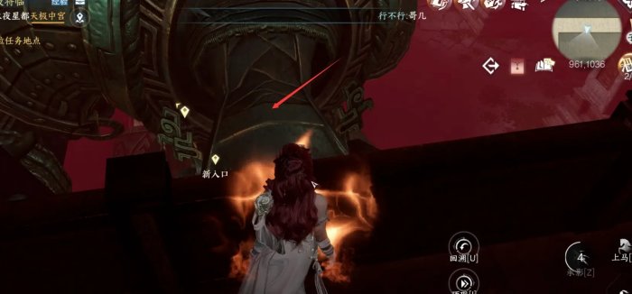 我们在二楼来到巨像倒下的正前方用承影剑瞄准巨人的脖颈位置直接过去。