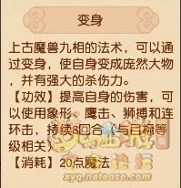 特色:门派专属技能“变身”可提高自身伤害,处于“变身”状态下可使用技能狮搏、象形、鹰击、连环计,常见于三攻、“212”阵容。