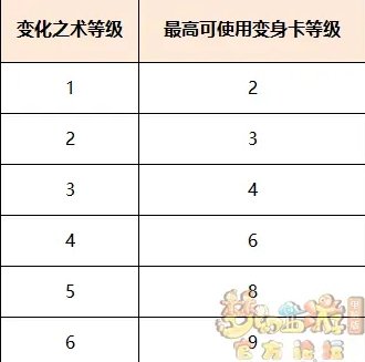 效果:学习变化之术后才可以使用变身卡变换造型,变化之术等级越高,可使用更高级的卡片,并延长一定的变身时间。