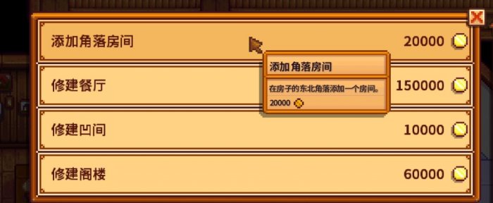 有四个新的住宅装修目标,包括阁楼、凹间、餐厅和角落房间,如果你在之前的版本已经是最大的房间了,现在可以在罗宾那里升级成更大的房间。