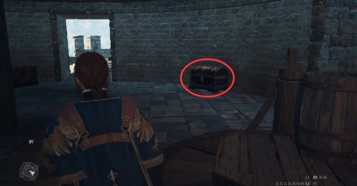 从二楼下图位置可登上瞭望塔。楼梯断了的地方用冲刺跳过去,即可来到瞭望塔的塔顶,开宝箱得到“指引龙眼”,可在地图上标出龙之脉动碎片的位置,可无限次数使用。