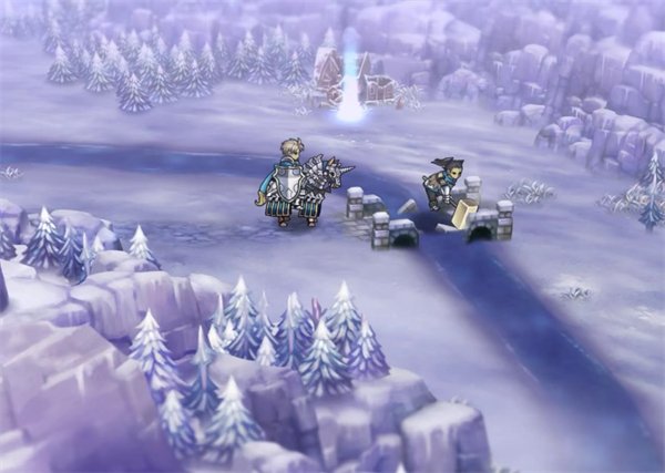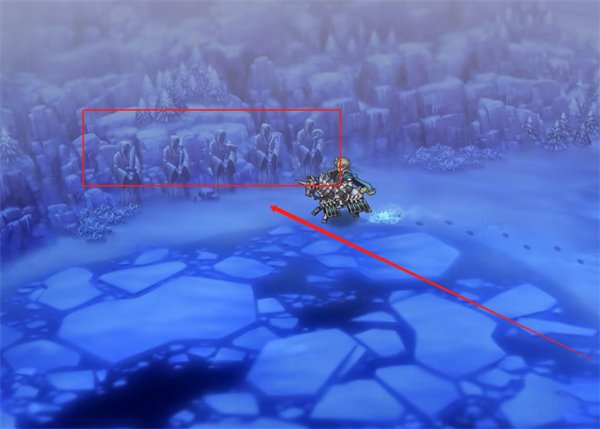 4、修好桥之后玩家过桥往下边走,可以看到隘口中间有敌人,直接过去干掉他进隘口。
