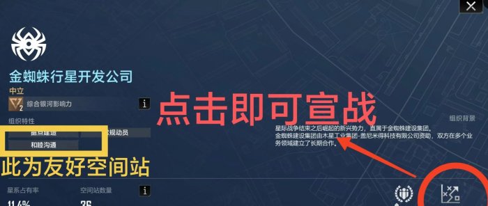 在围完据点后,小队指挥官则需要对拥有该城池的NPC进行宣战后即可对空间站发起进攻