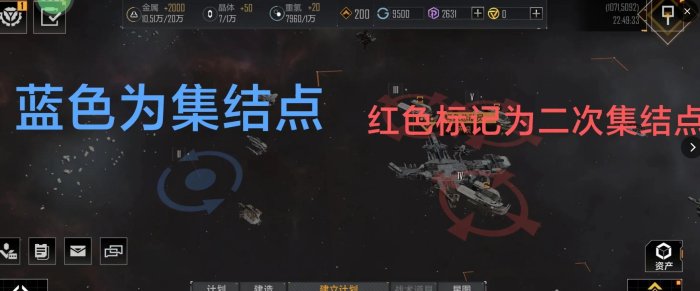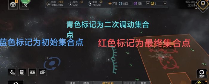 第一种集合调动方式为:在集合点距离空间站近处的时候可以直接调动以及包围空间站的据点,在据点围不下的时候在考虑围主城
