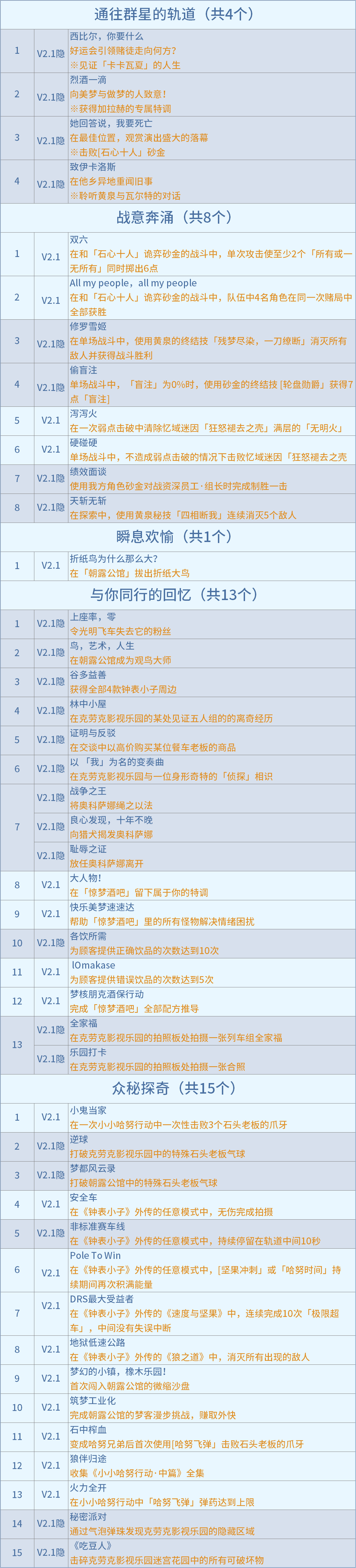 《崩坏星穹铁道》2.1版本新增成就攻略大全