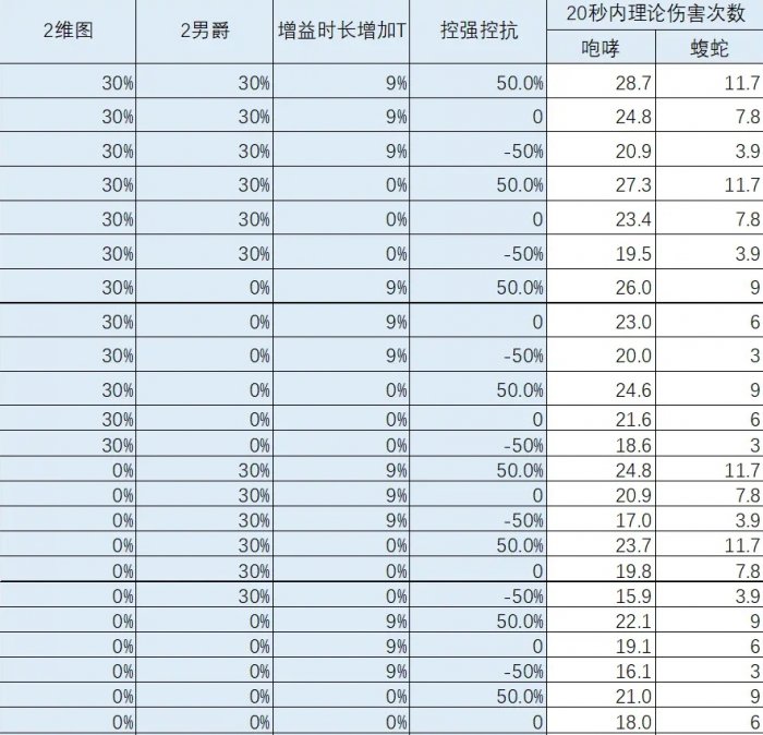 相关的变量是增益时长(会衰减),2维图,2男爵,控强控抗。在这些变量下,我们将新五星与经典的苦行触发宝石2星蝮蛇来进行对比。