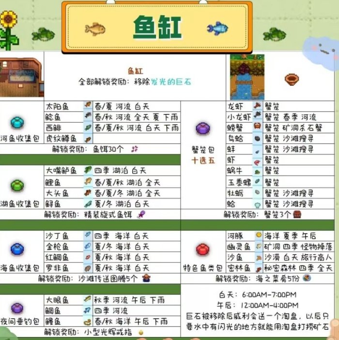 3、鱼缸的蟹笼收集包:可以解锁布告栏