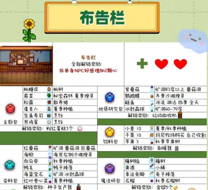 5、鱼缸和布告栏:这两项就不着急了,一个是本身完成难度稍大,另外解锁的东西也影响不大,随着心情慢慢献祭完成就行。当然,开局可以选择第一年完成献祭,那么猪车就会在第一年的某一天刷出来红叶卷心菜!
