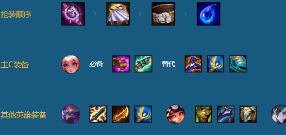 主C莉莉娅:常规输出装法爆、帽子、大天使、巨杀、破防都可以,也可以带蓝霸服或纳什增加技能频率。