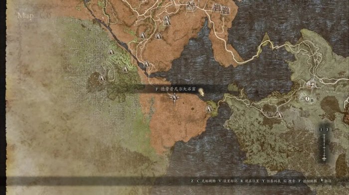 在如下点位处,巴达尔南部,可通过此洞窟通往火山岛地区。