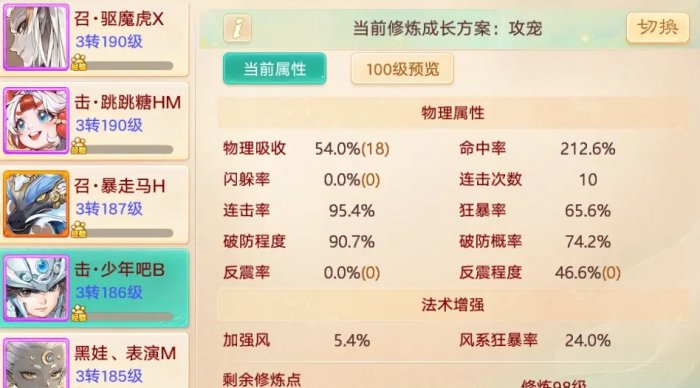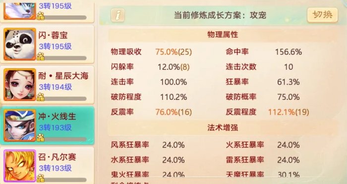修炼成长方案:攻宠(主要是命中率、连击率、连击次数)