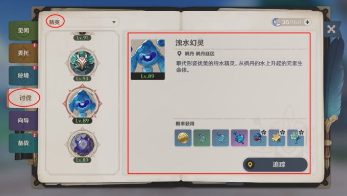 3.在书籍里找到浊水幻灵,然后我们点击追踪