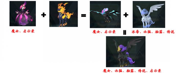 这样就能得到魔女+传说+脑筋+凶猛+启示录技能的唤夜兽。